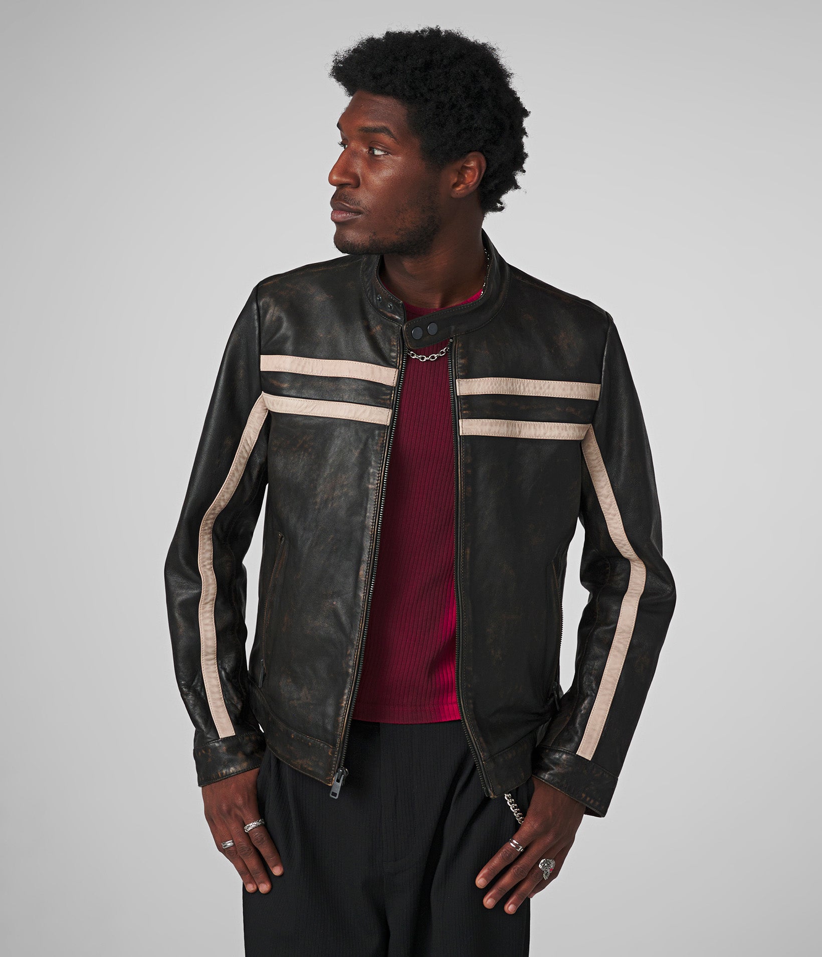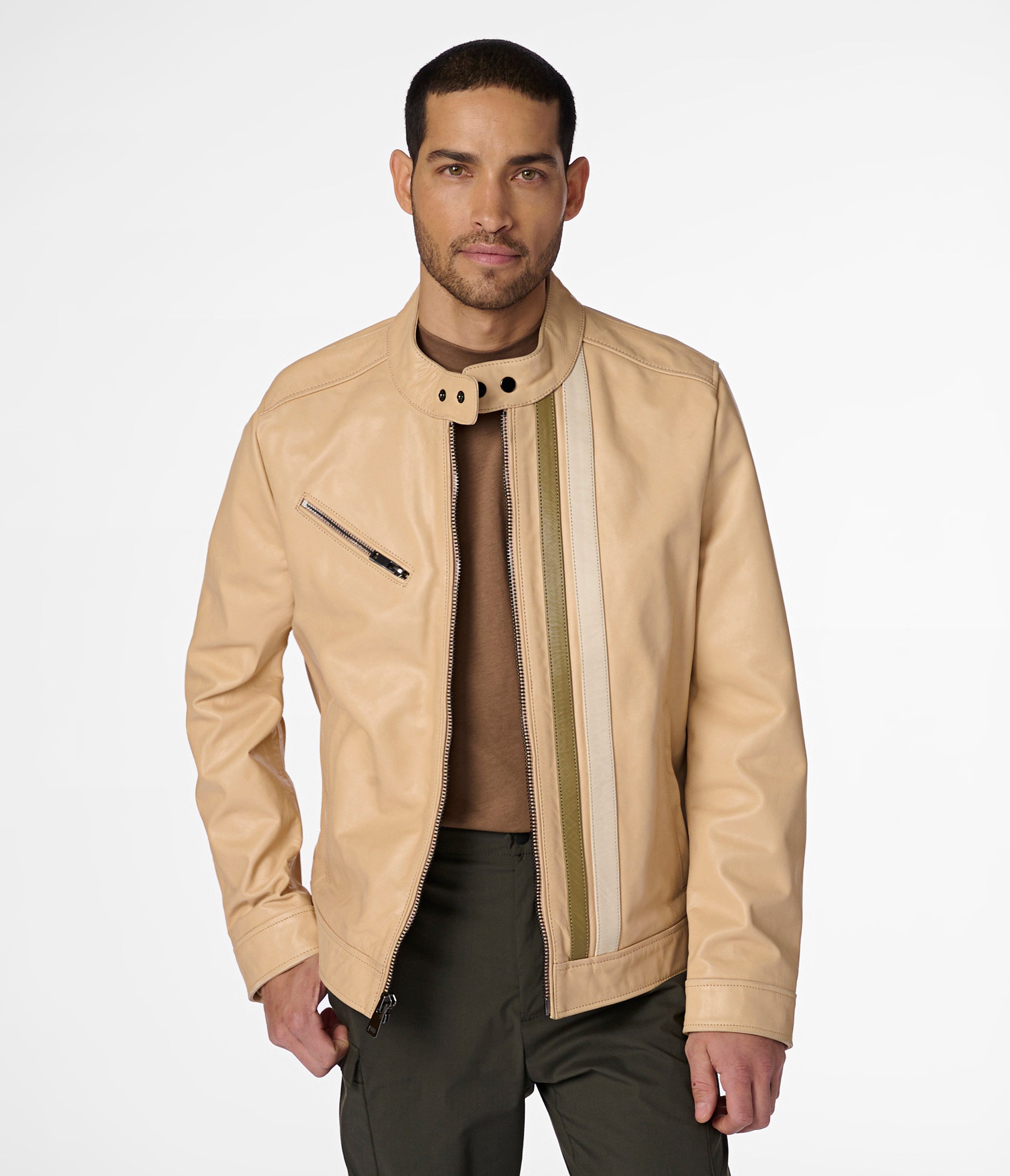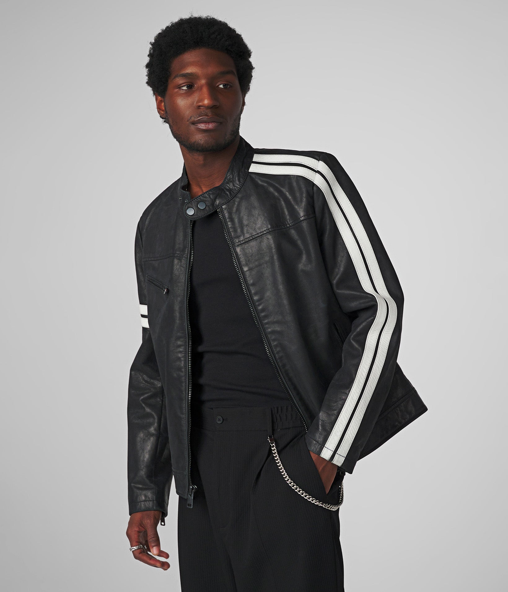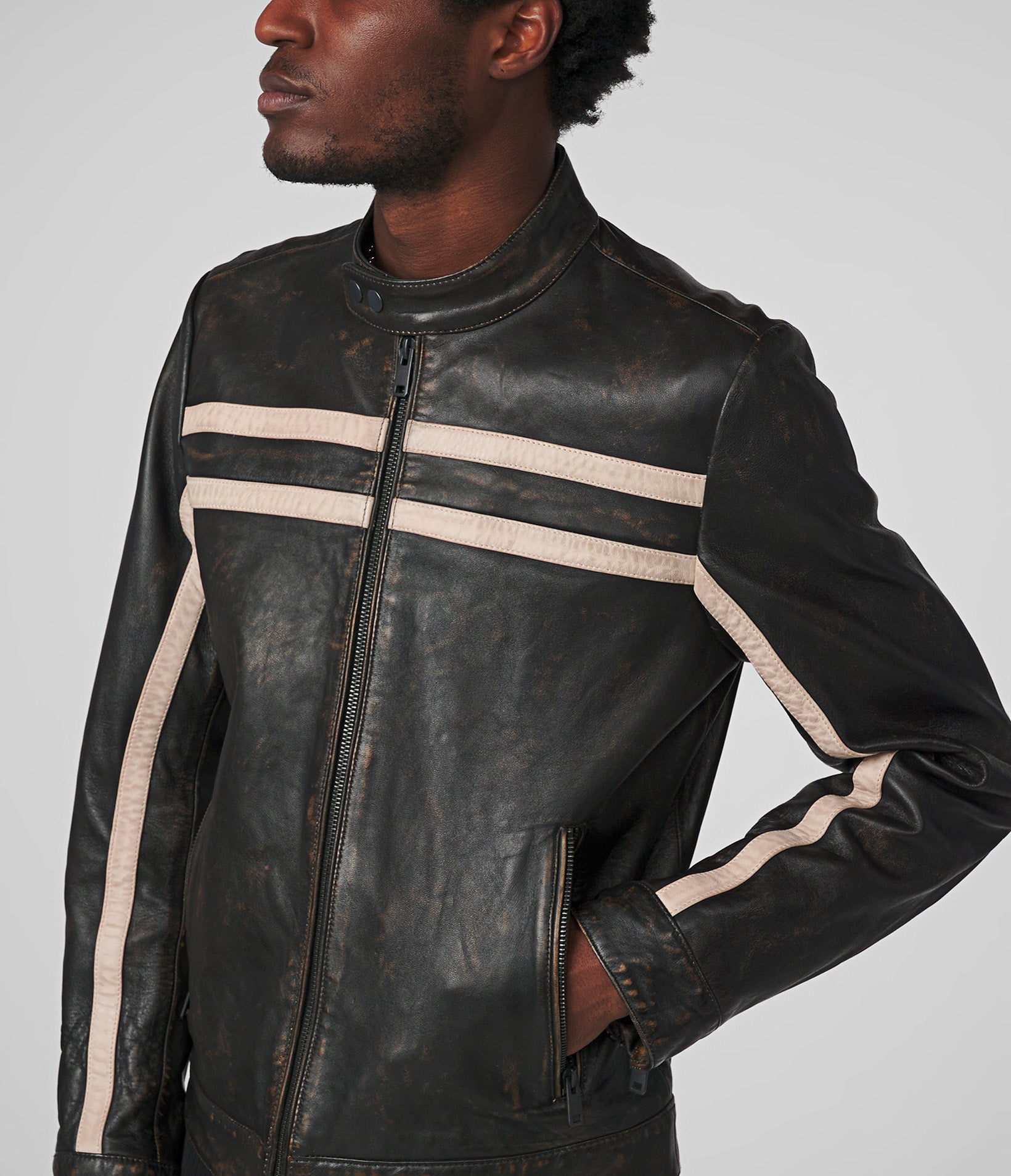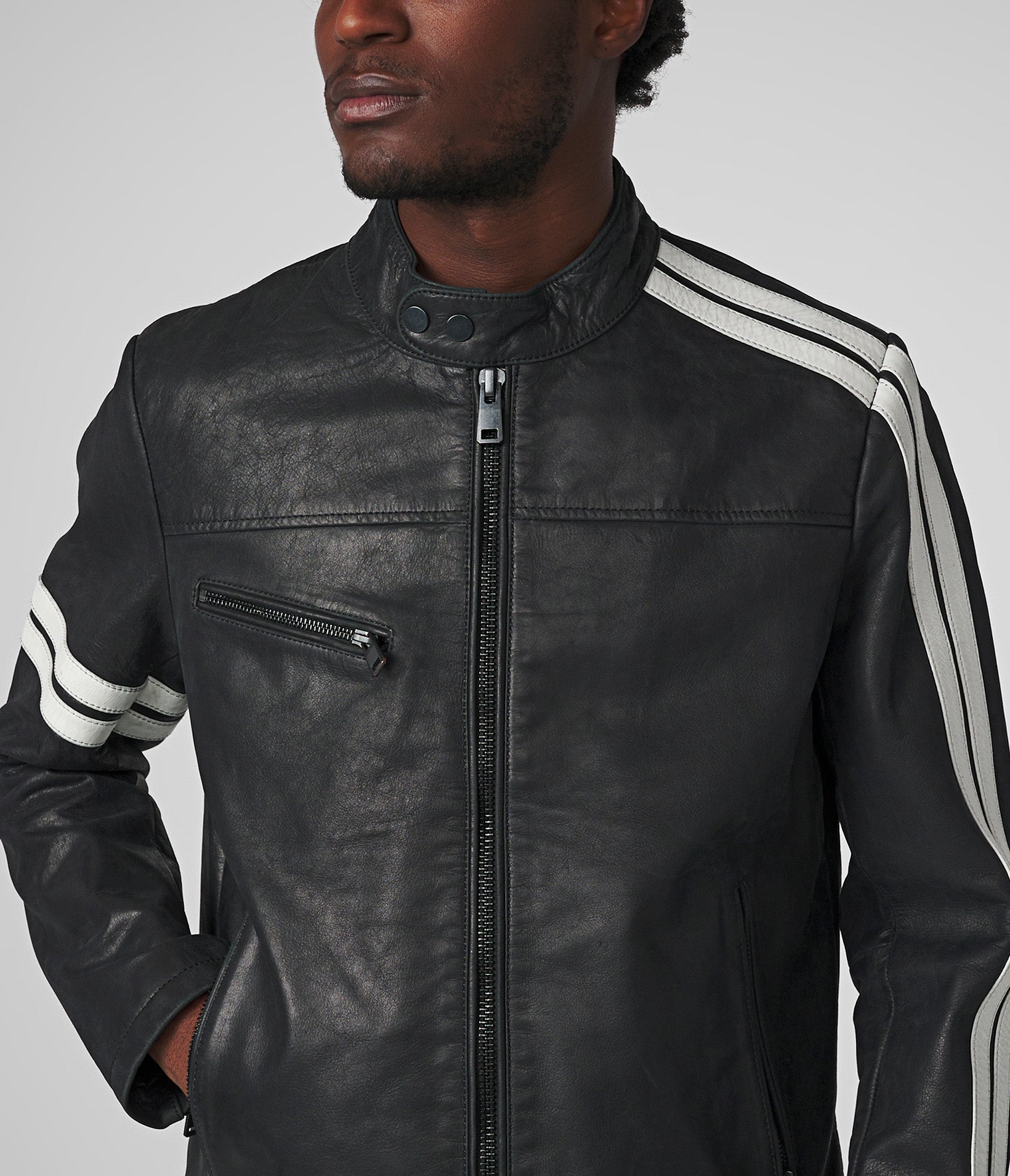 Adam Leather Jacket With Multi Stripe