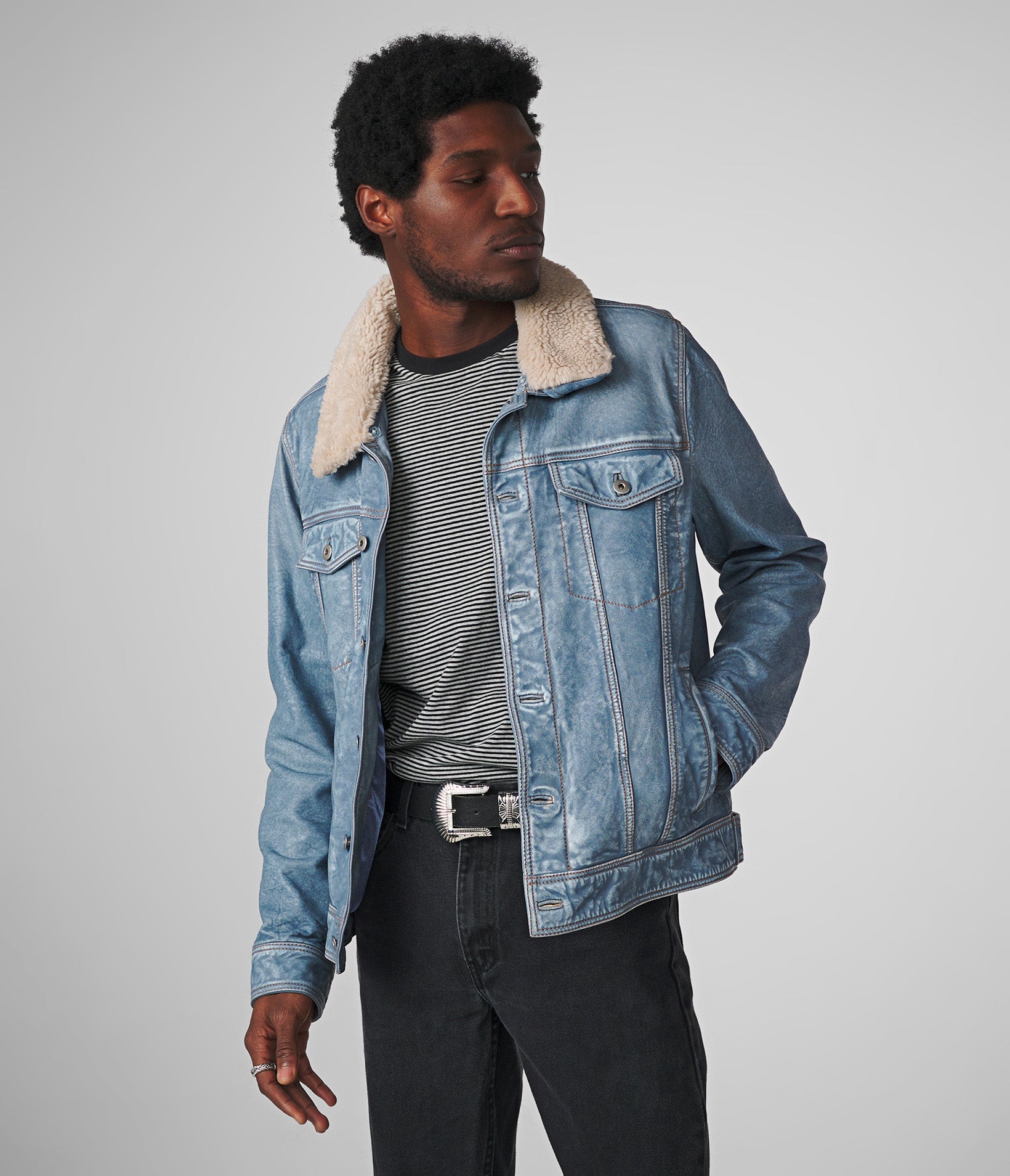Luxton Denim Leather Jacket With Shearling