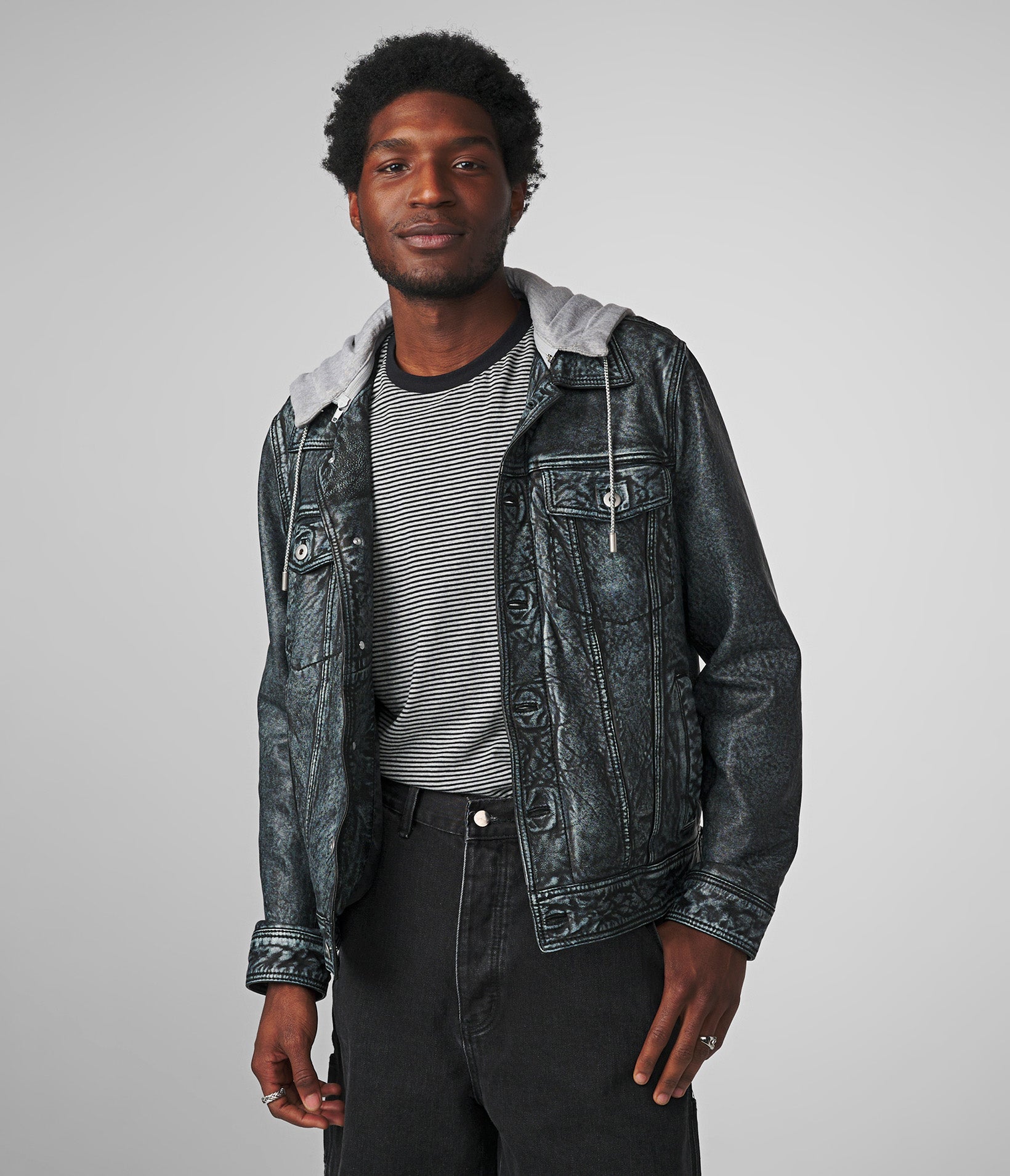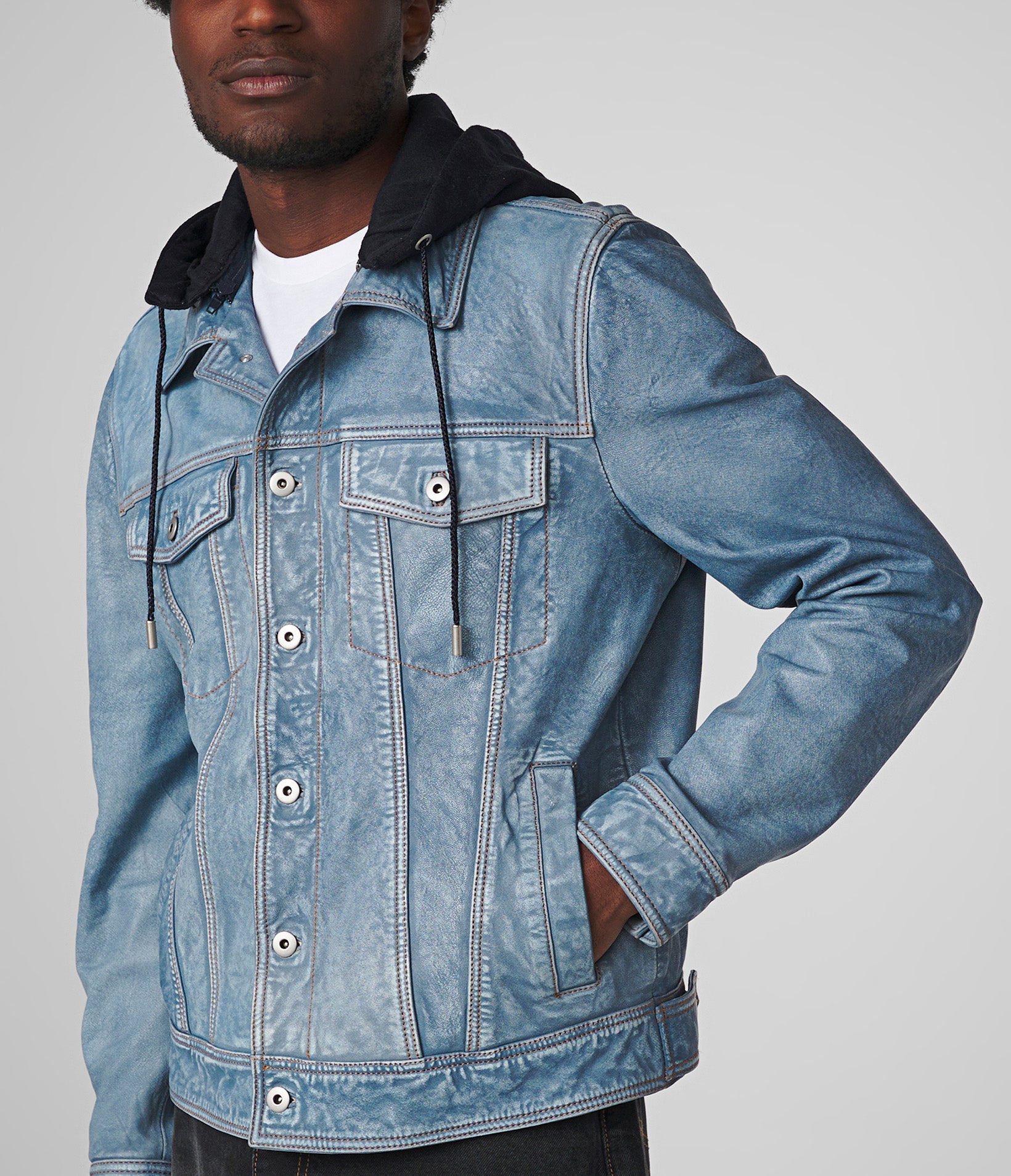 Crew Denim Leather Jacket With Hood