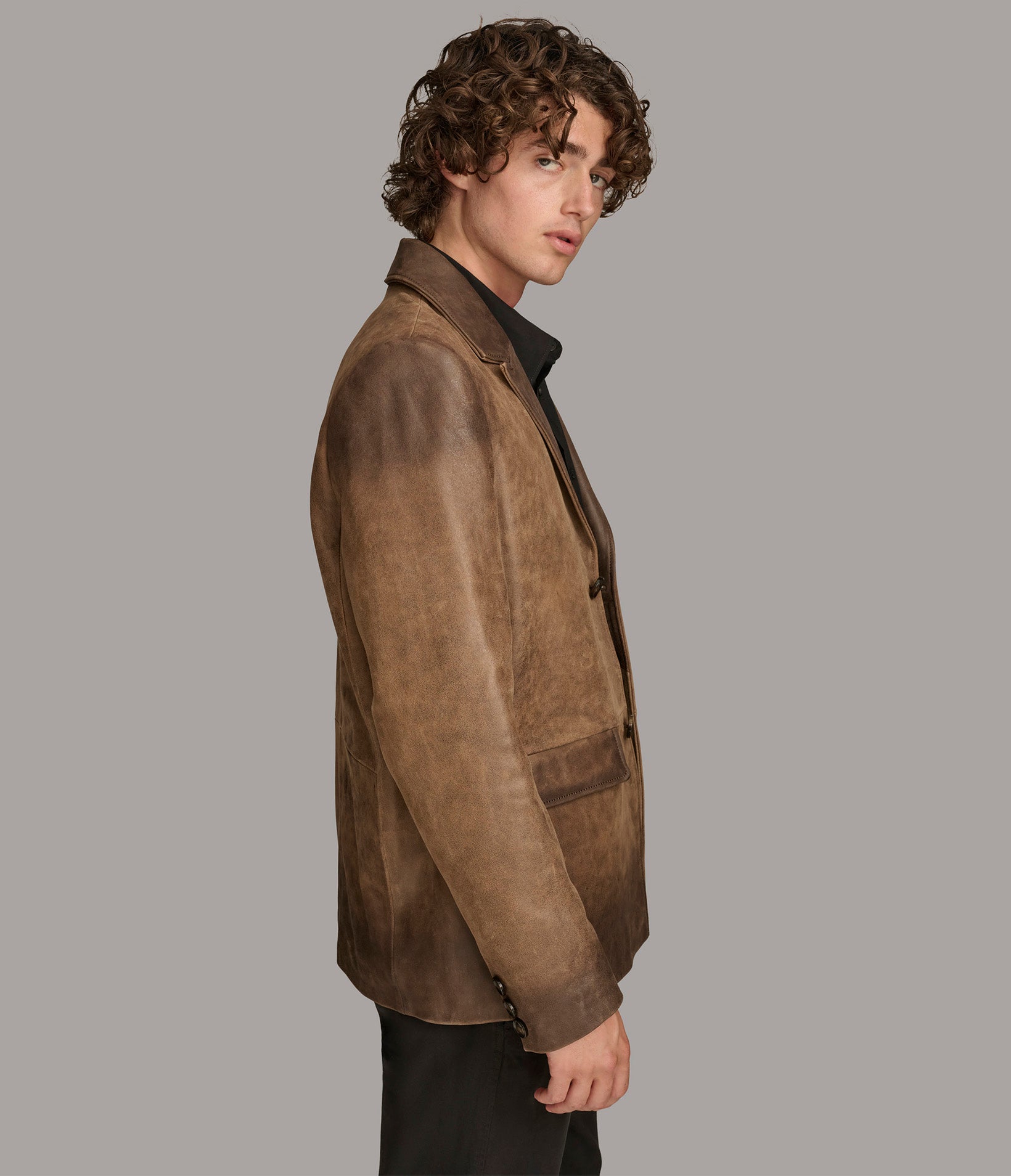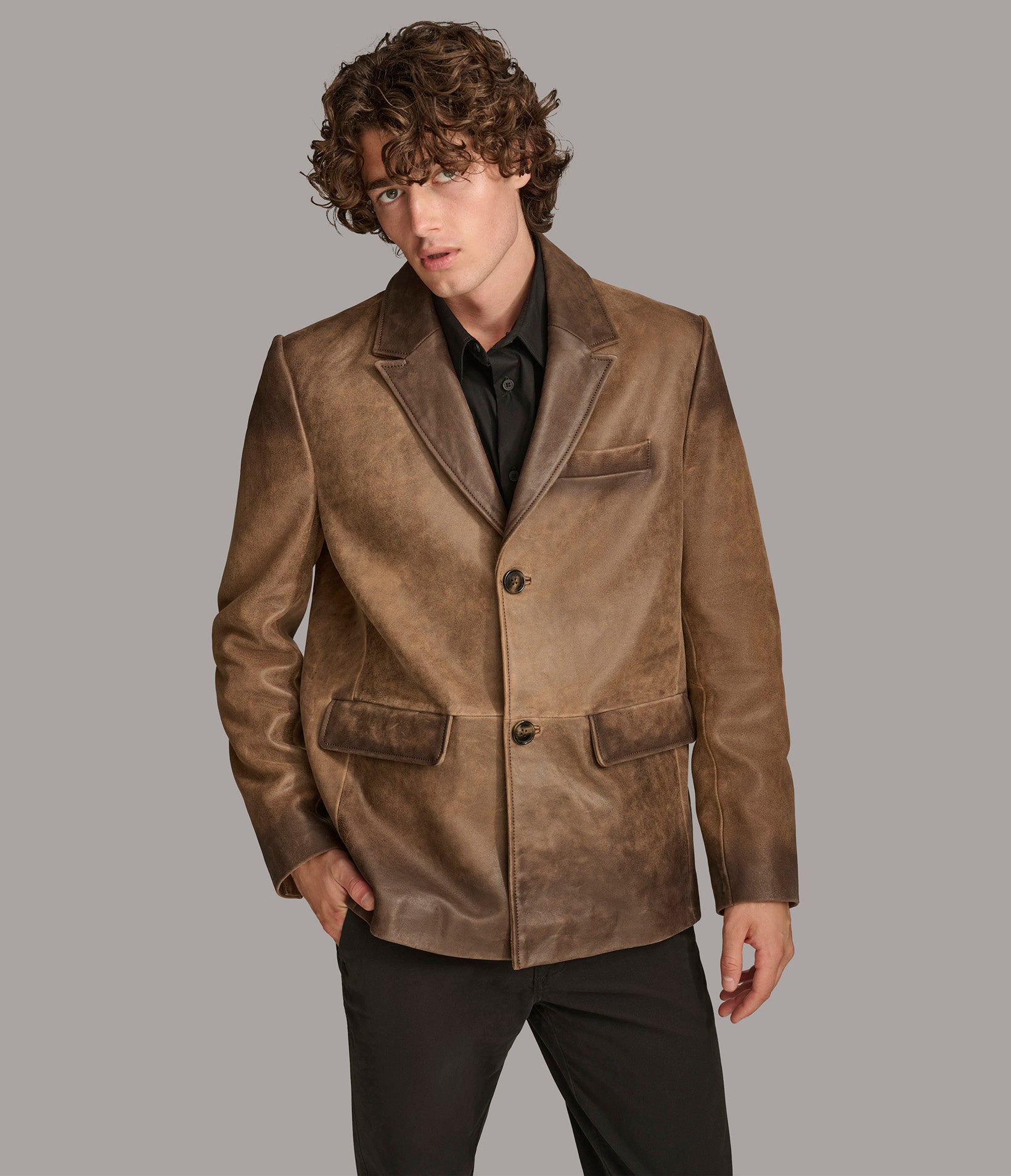 Dylan Two Button Genuine Leather Blazer