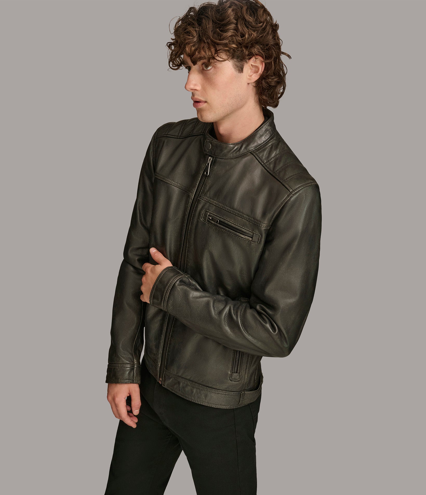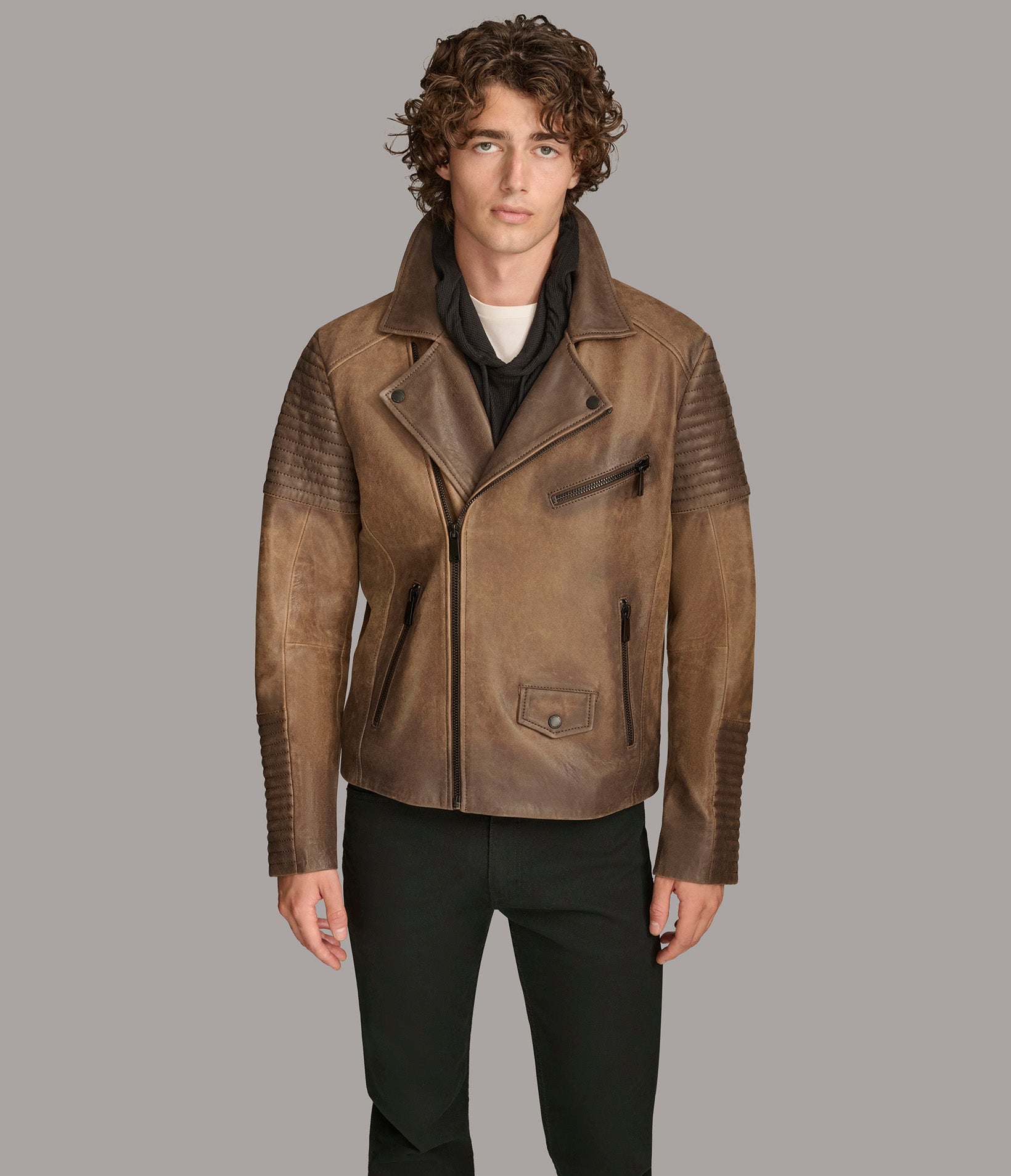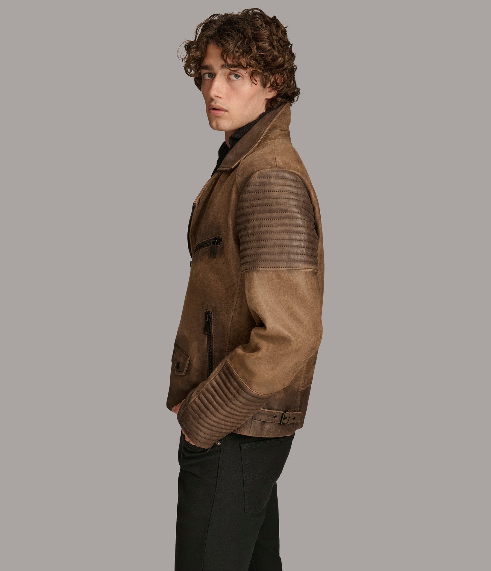 Drew Genuine Leather Jacket With Accordian Shoulder