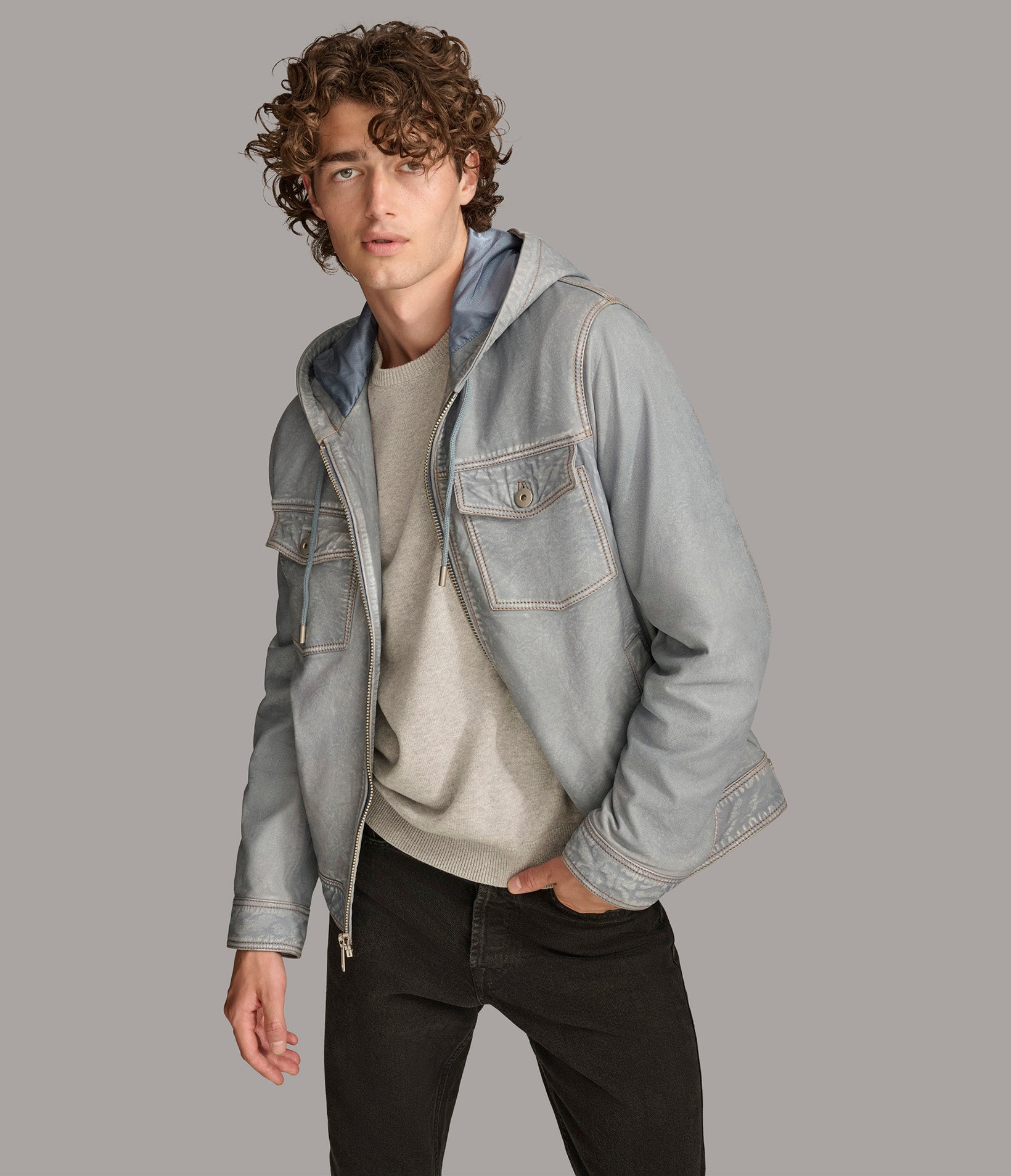 Alan Leather Jacket With Hood