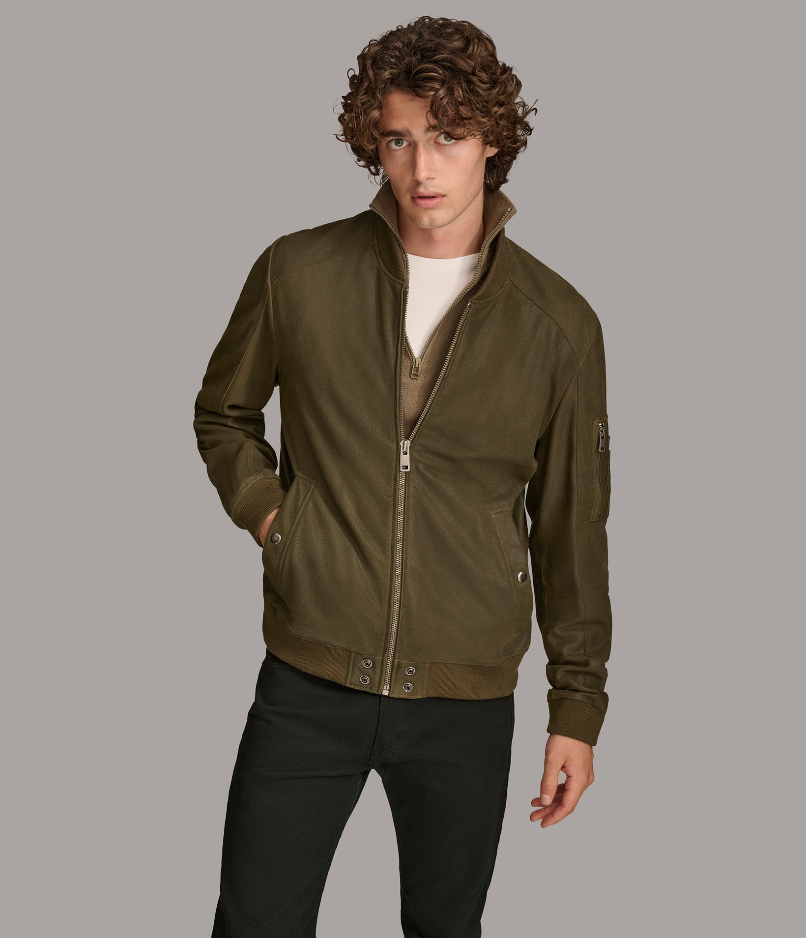 James Genuine Leather Bomber Jacket