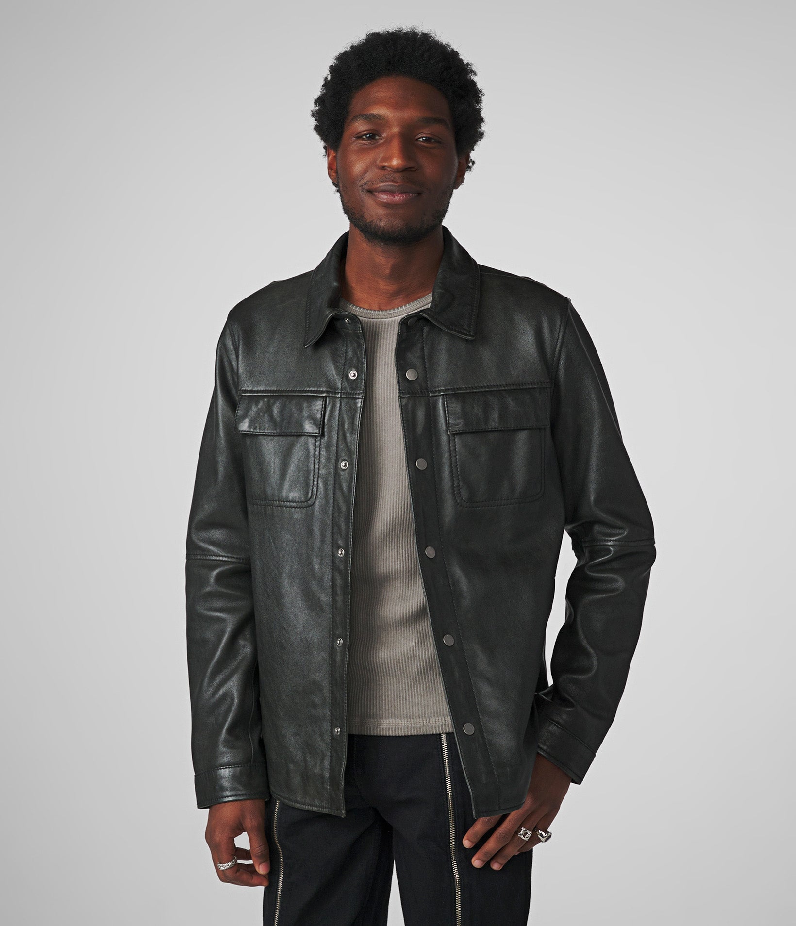Jimmy Leather Aviator Bomber Jacket With Shearling Collar