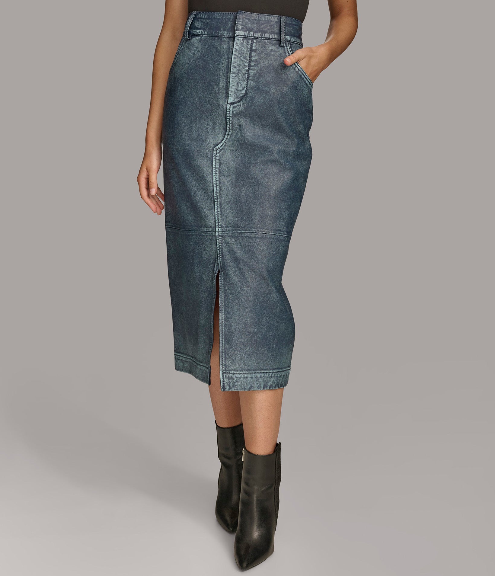 Long Denim Skirt With Slit