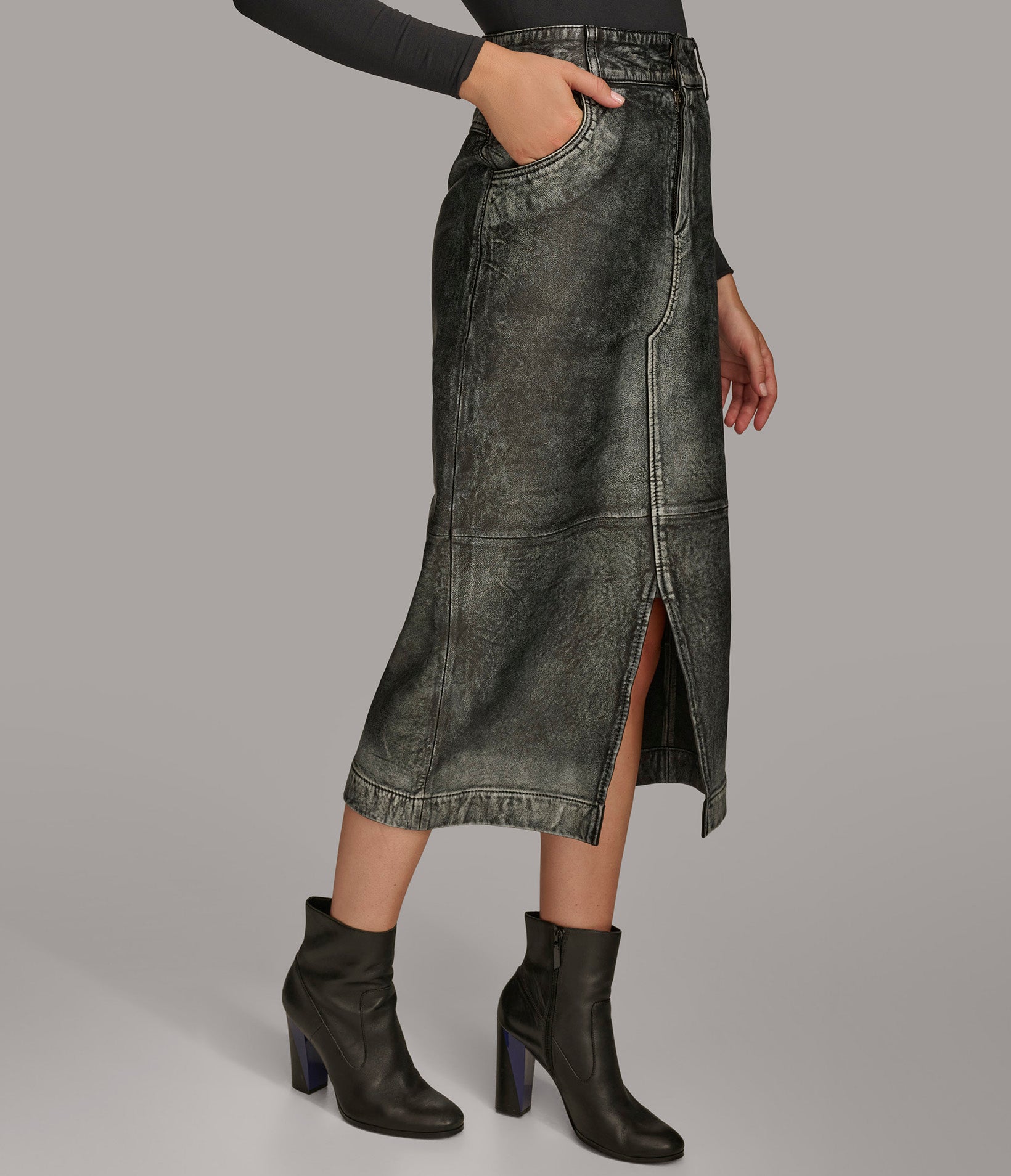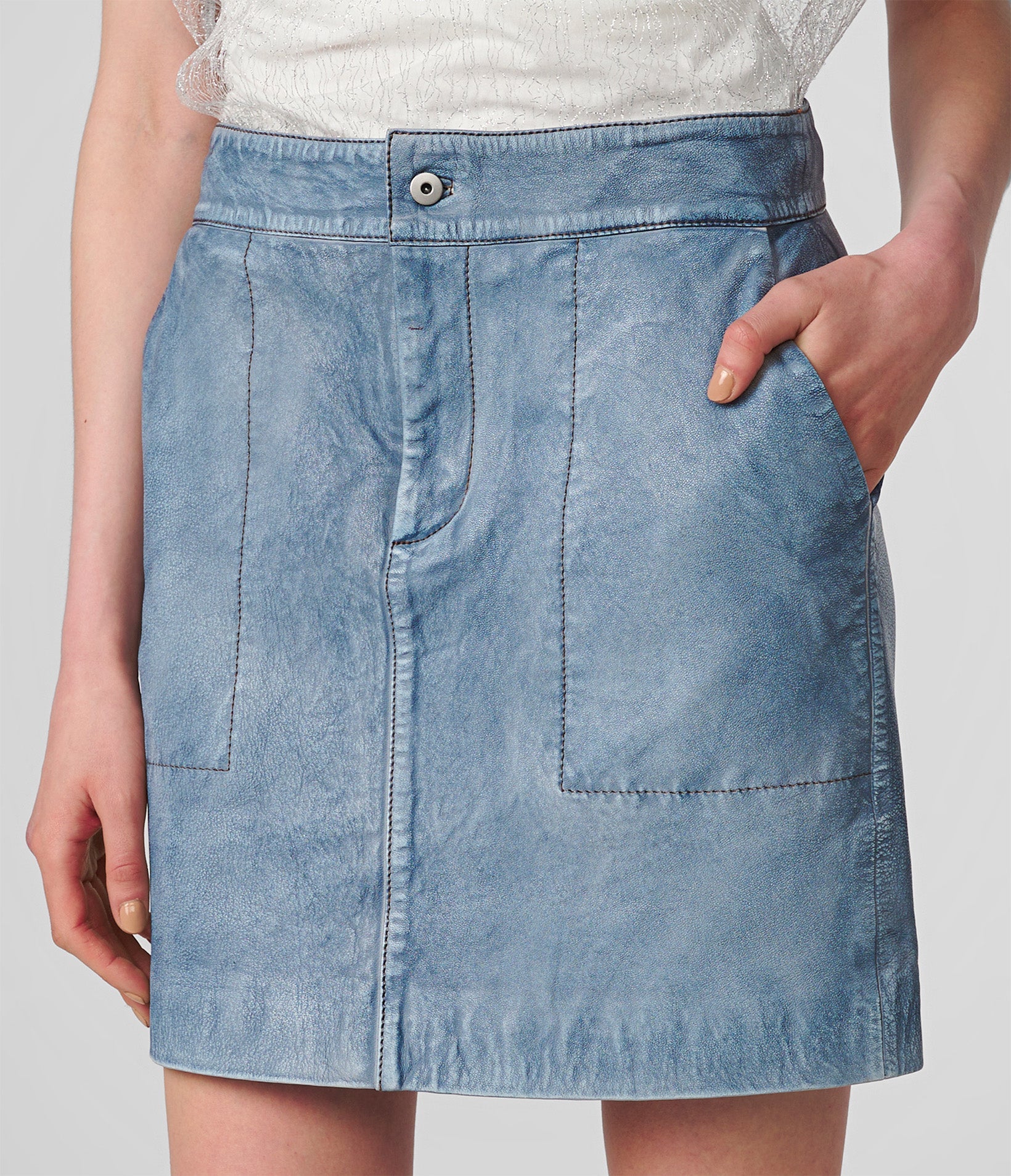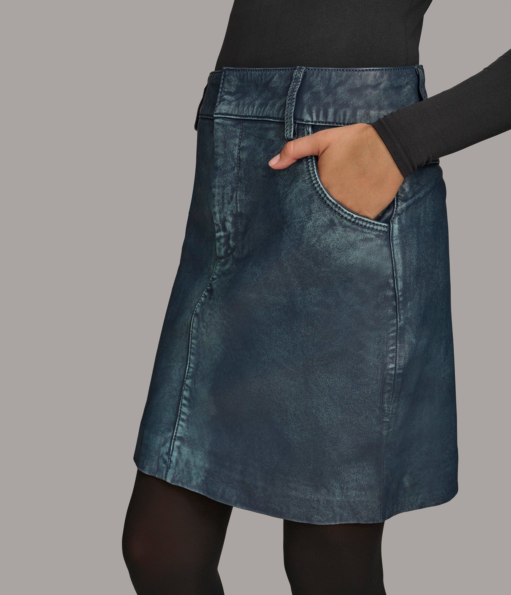 Mini Leather Denim Skirt
