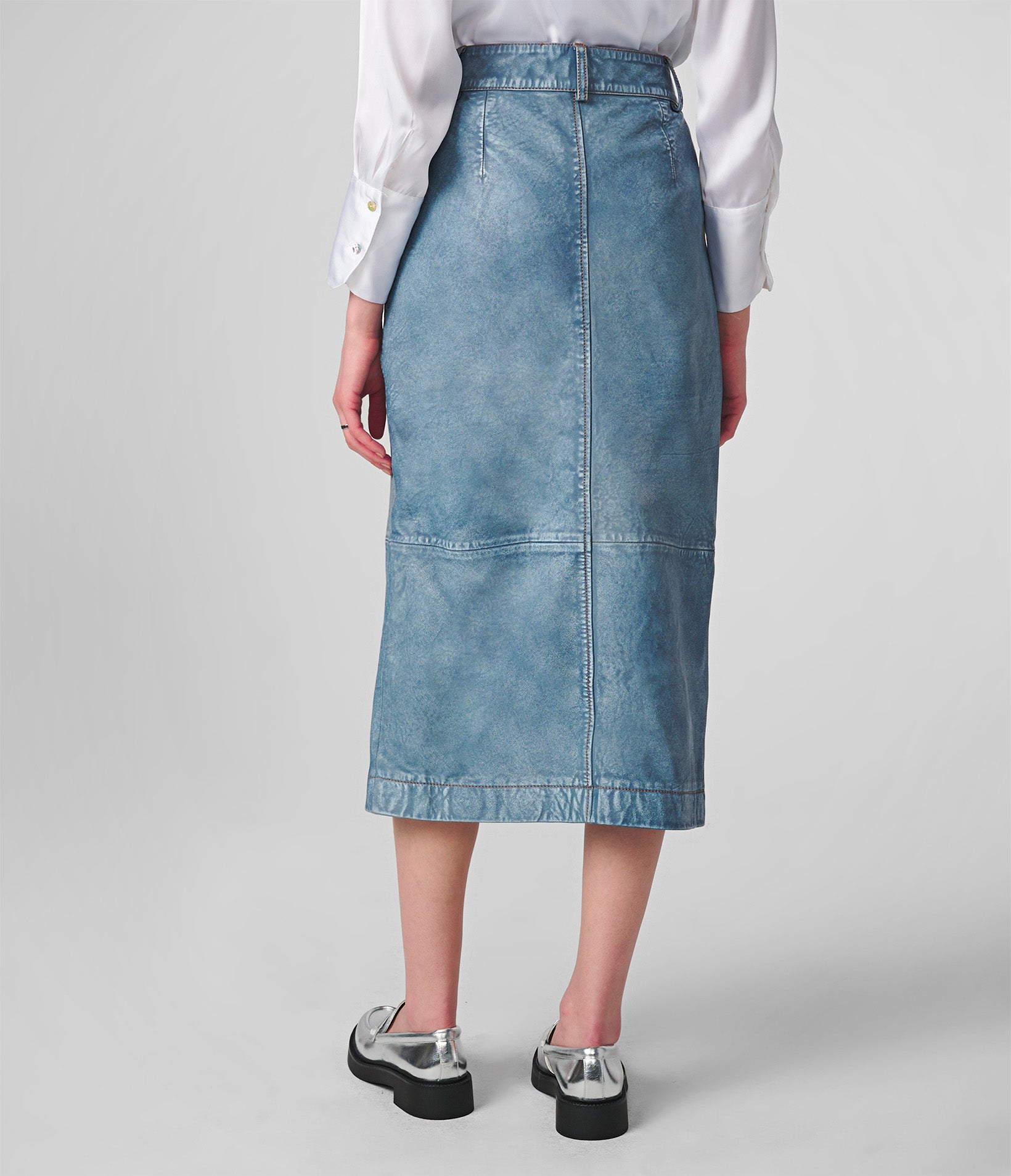 Rolled Hem Mid Length Denim Skirt