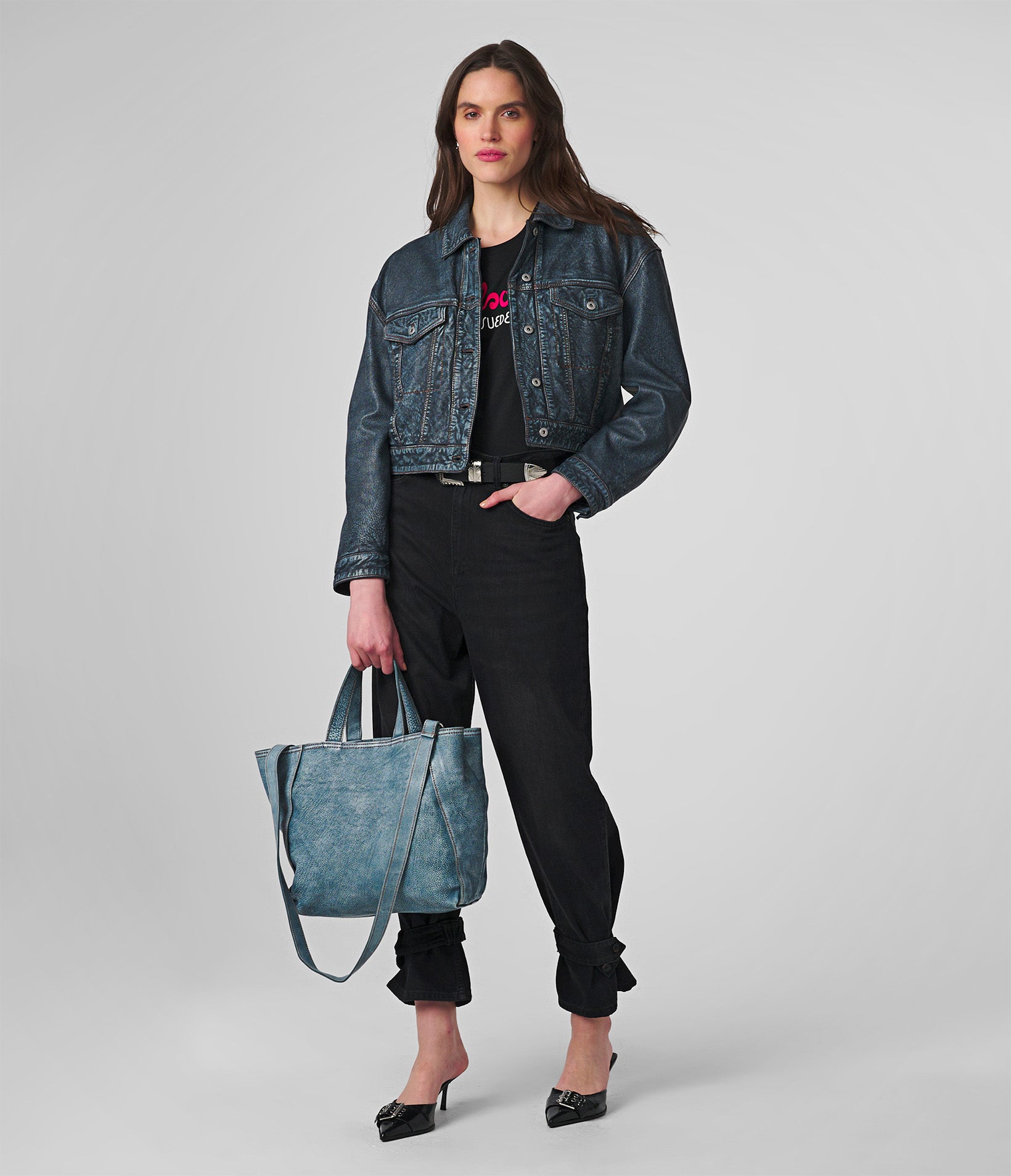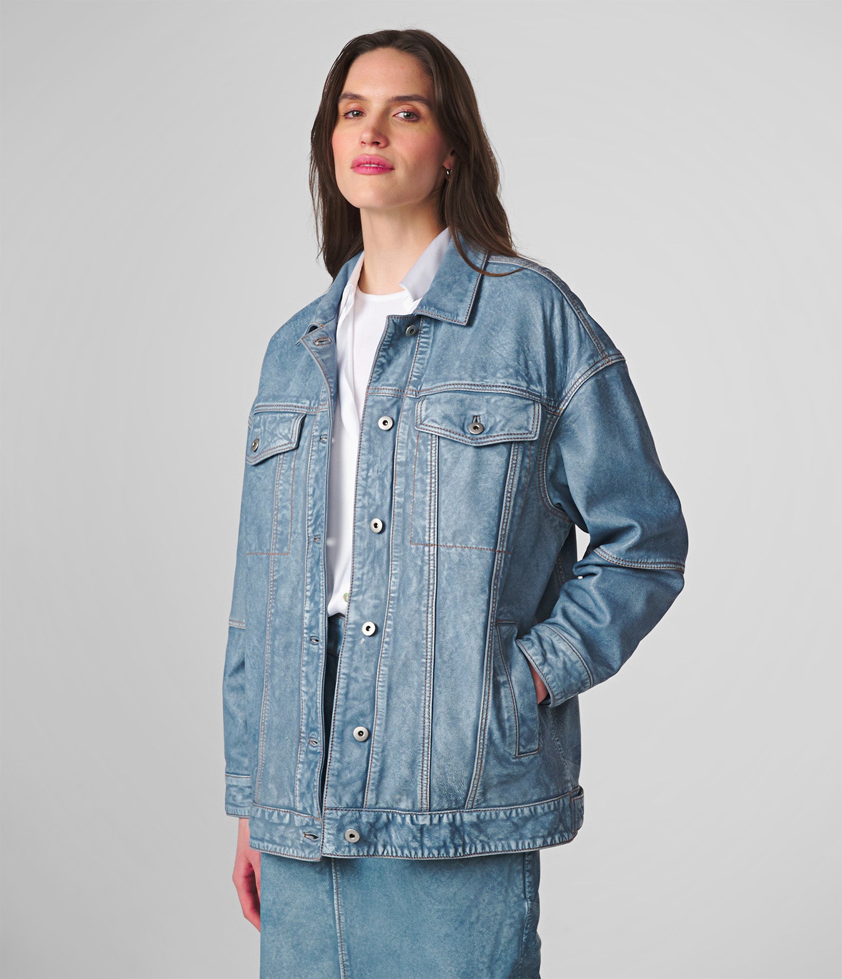 Sydney Oversized Denim Leather Jacket